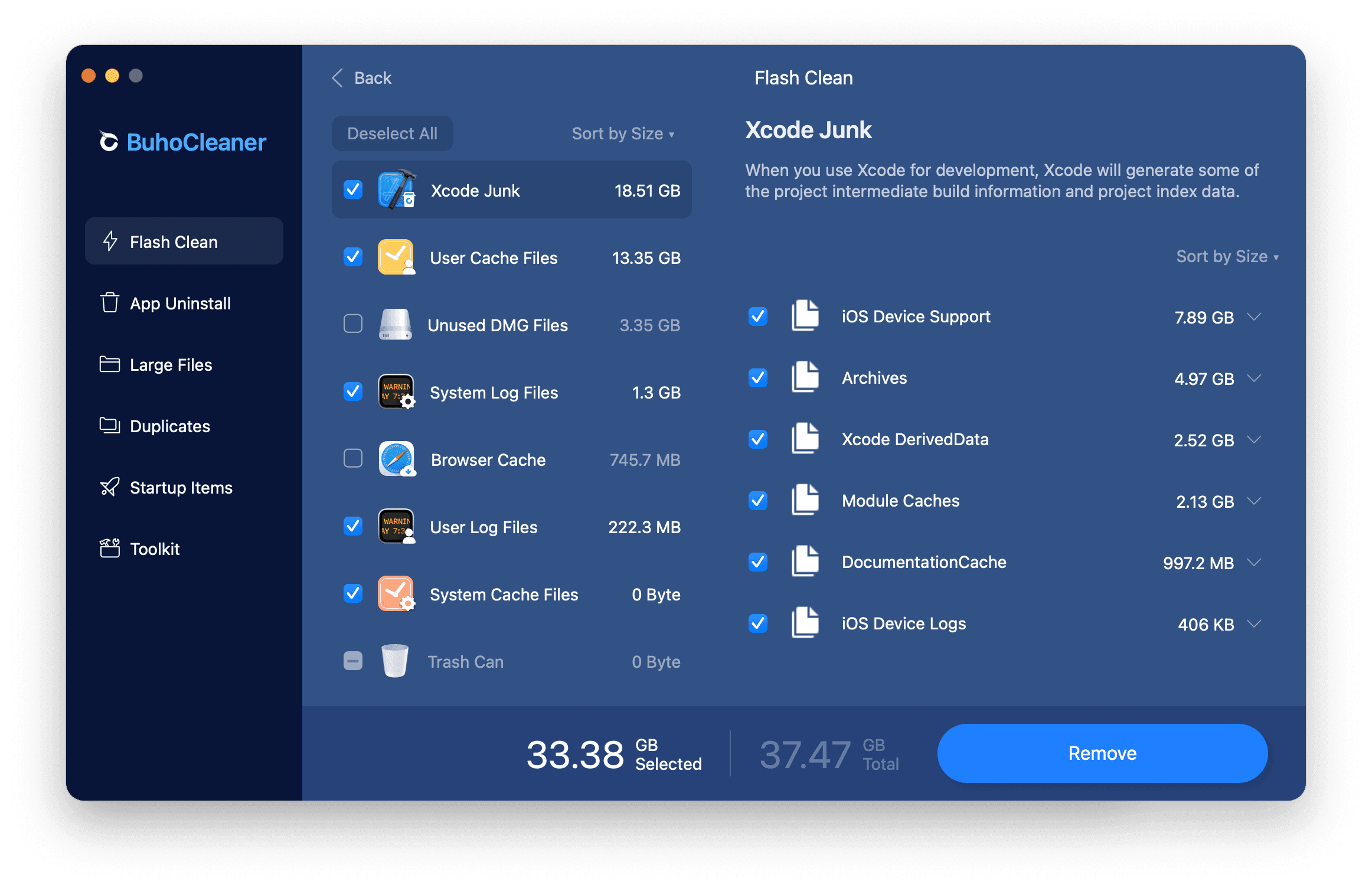 BuhoCleaner offers a simple, one-click cache cleaner that hunts down that leftover debris. It quickly removes the garbage to give that space back to you.