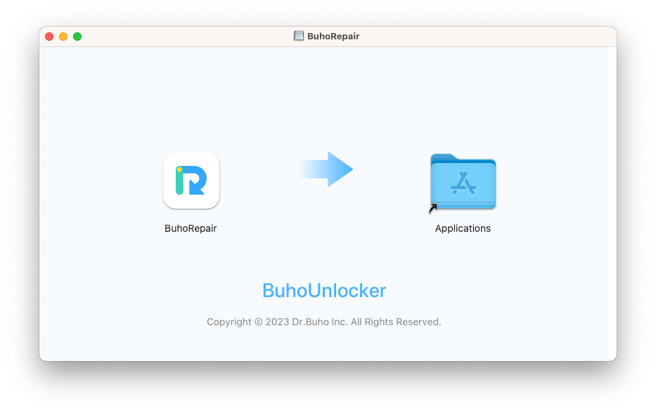 Ouvrez le fichier .dmg que vous avez téléchargé et faites glisser BuhoRepair dans le dossier Applications.