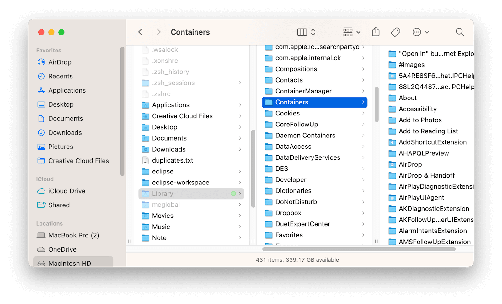 Click the back arrow in the Finder window to go back to the ~/Library folder.