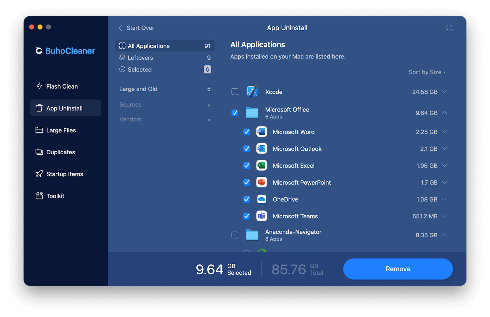 Manually removing Microsoft Office on Mac can be time-consuming. For a quicker solution, consider using BuhoCleaner, an easy-to-use Mac Office uninstaller. With a single click, you can delete Office apps and their related files using this tool.