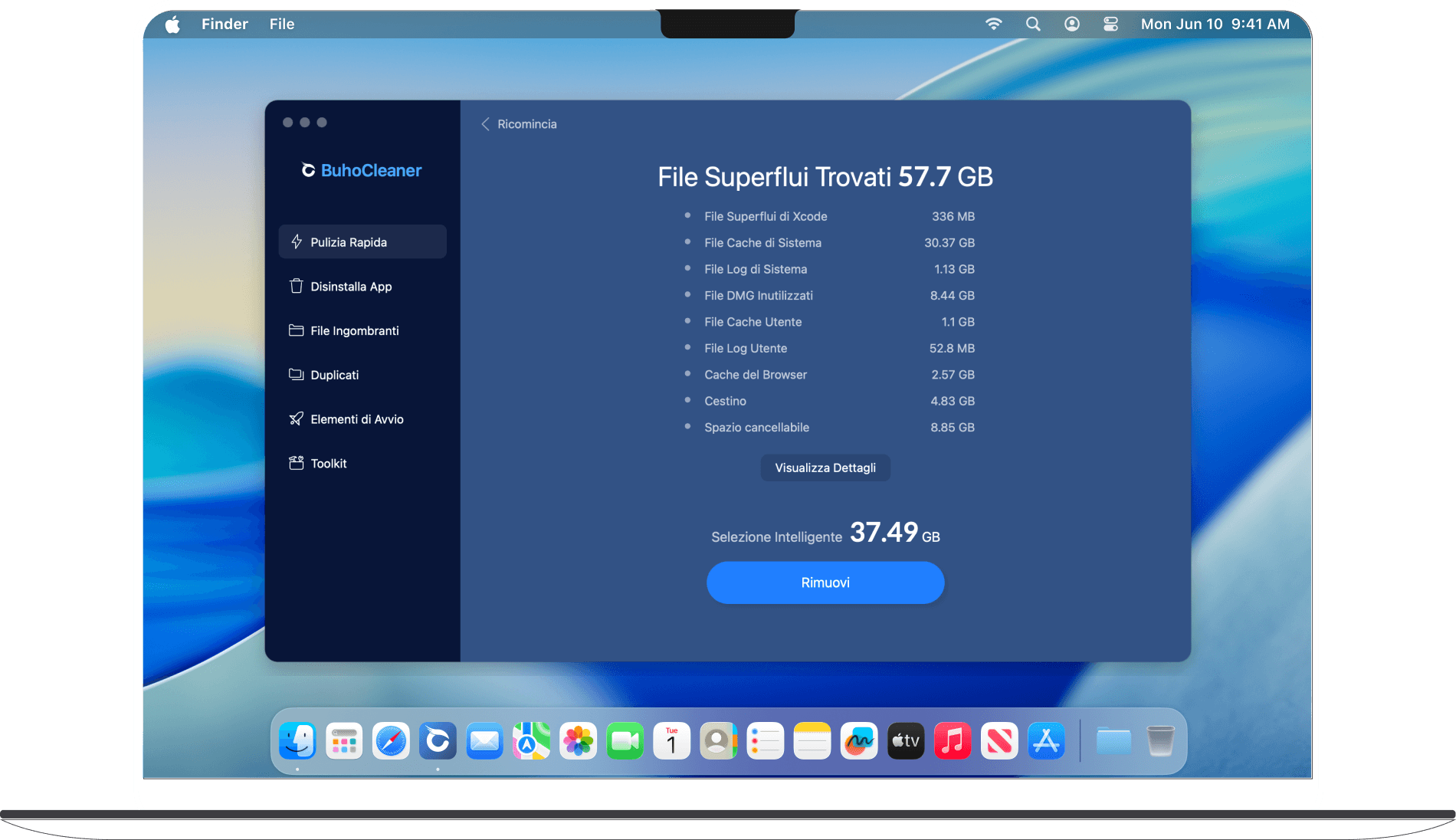 BuhoCleaner può aiutarti a migliorare le prestazioni del tuo Mac eliminando tutta la spazzatura presente sul disco rigido, ottimizzando lo spazio e ripulendo le applicazioni vecchie e inutilizzate.