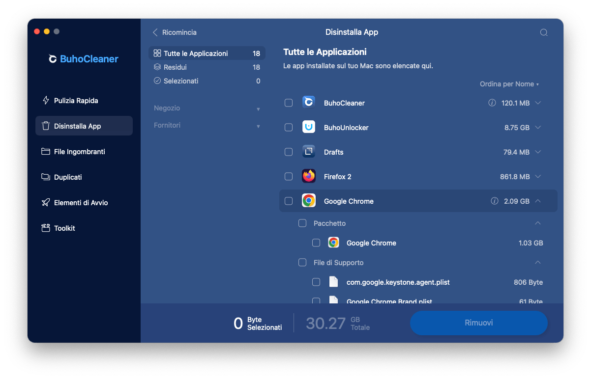 Tuttavia, questa operazione potrebbe non disinstallare completamente il software problematico. Quindi, se volete disinstallare completamente l'applicazione problematica, vi consigliamo vivamente BuhoCleaner. Si tratta di un disinstallatore di app potente e professionale. Permette di rimuovere completamente le app problematiche e i file correlati.