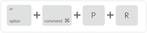 - Premi il pulsante di accensione per accendere il tuo Mac e immediatamente tieni premuti i tasti Opzione + Comando + P + R.
