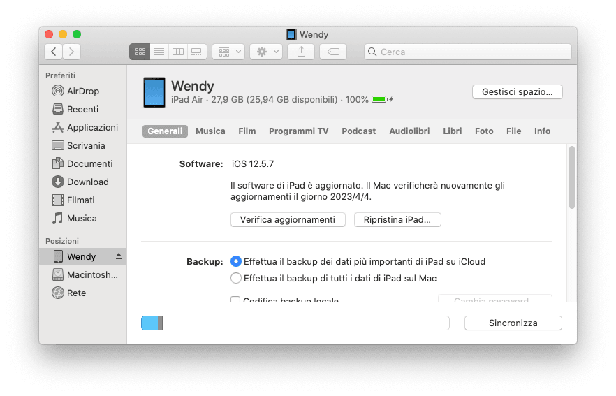 - Cliccate sull'icona del vostro iPad in alto a sinistra (per Windows)/ sulla barra laterale sinistra (per Mac).