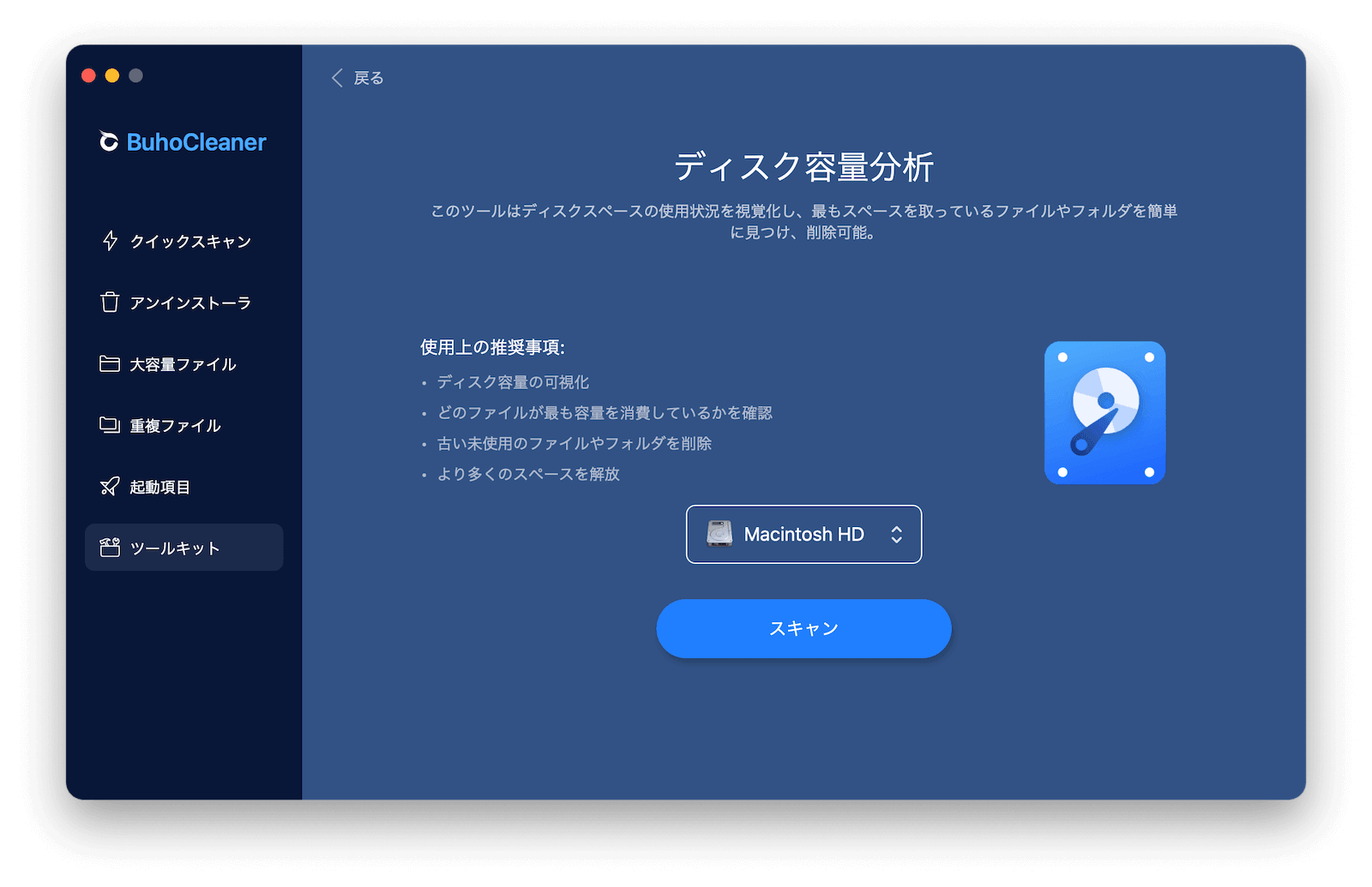- BuhoCleanerをダウンロード、インストールし、起動します。