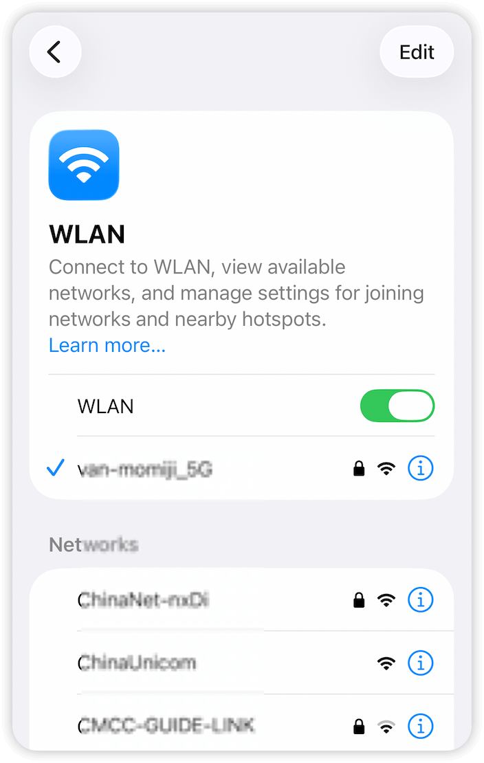 대부분의 경우 사진 로딩 문제의 원인은 네트워크 연결 문제입니다. "iCloud 사진"과 "iPhone 저장 공간 최적화" 기능을 활성화한 경우, 작은 크기의 로컬 미리보기 이미지만 볼 수 있기 때문입니다. 하지만 고해상도 이미지는 여전히 iCloud에 저장되어 있습니다. 네트워크 속도가 느리거나 불안정하거나 차단된 경우 다운로드가 중단될 수 있습니다. 네트워크 연결 개선