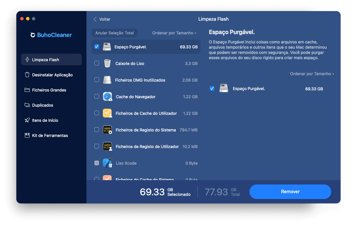 De fato, o BuhoCleaner oferece muito mais do que apenas a limpeza de espaço. Ele oferece uma ampla variedade de recursos de limpeza, incluindo a remoção de arquivos grandes e duplicados, desinstalação de aplicativos, gerenciamento de programas de inicialização, monitoramento do status do sistema Mac e muito mais. Com essa ferramenta avançada, você pode recuperar gigabytes de espaço com apenas alguns cliques.