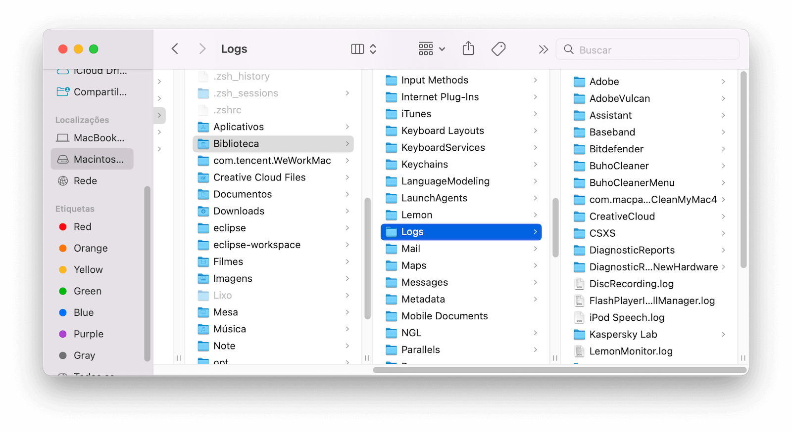 - Continue a remover os ficheiros registo em /Library/Logs/.